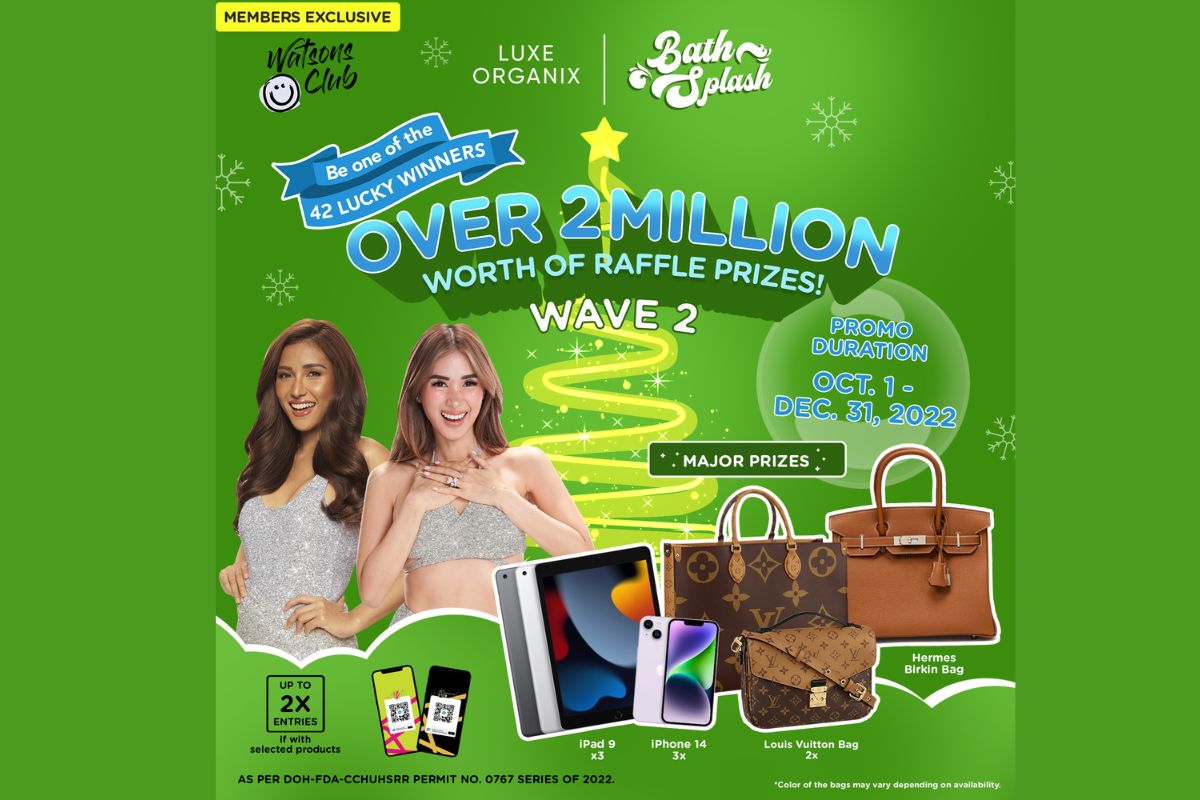 For the Bath Splash 2 giveaway promo, customers can enter for a chance to win one of over two million pesos in prizes with a single purchase of PHP 1,500 worth of LUXE ORGANIX skin, body, and hair care products.